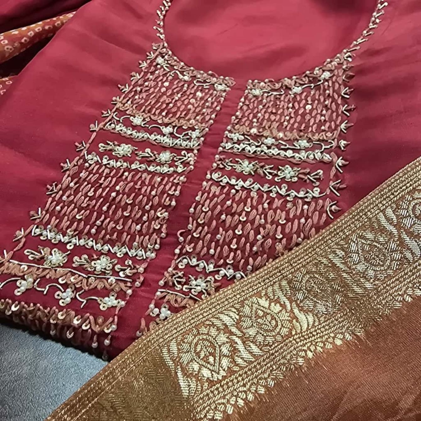 Top Fabric: Chanderi (Rani Pink with Zari embroidery)