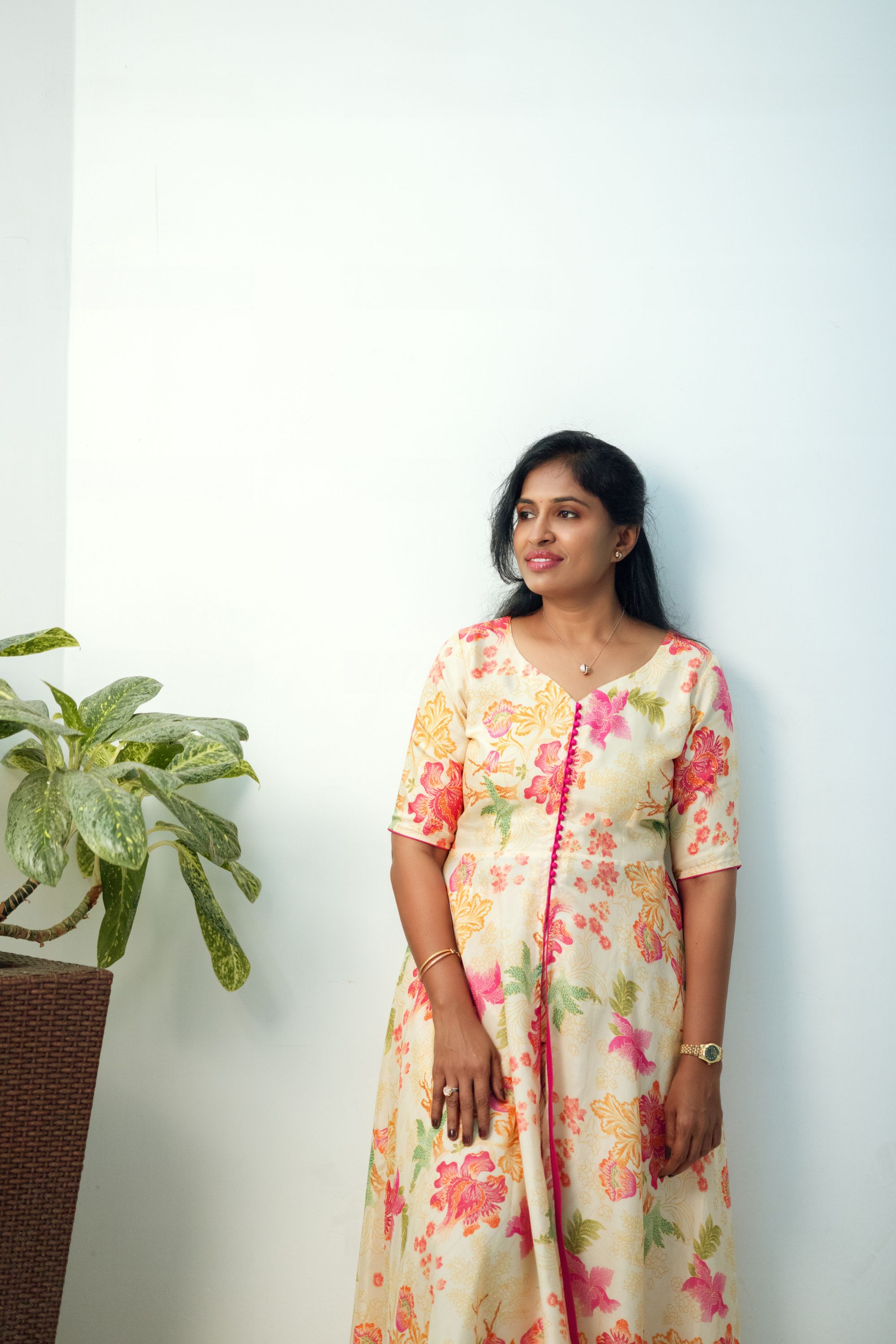 This elegant floral high-low Co-Ord, crafted from luxurious Bemberg silk, beautifully combines grace and comfort. The soft cream base with vibrant floral prints adds a refreshing touch, while the flowy silhouette enhances the feminine charm. Perfect for festive occasions, office wear, or casual gatherings, this piece ensures effortless elegance all day long.