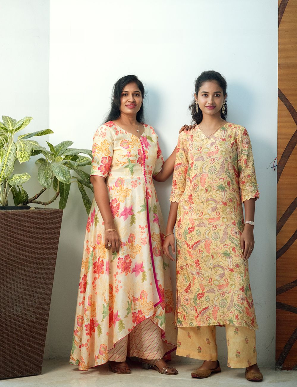 Graceful floral high-low Co-Ord made from soft Bemberg silk. Lightweight, flowy, and elegant—perfect for festive and casual occasions.
